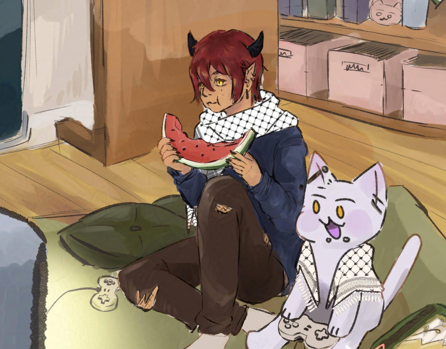If you decide to share your commission on social media, please credit! This can be done with a direct link/tag to JamKats’s social media pages, VGen account, or Carrd.